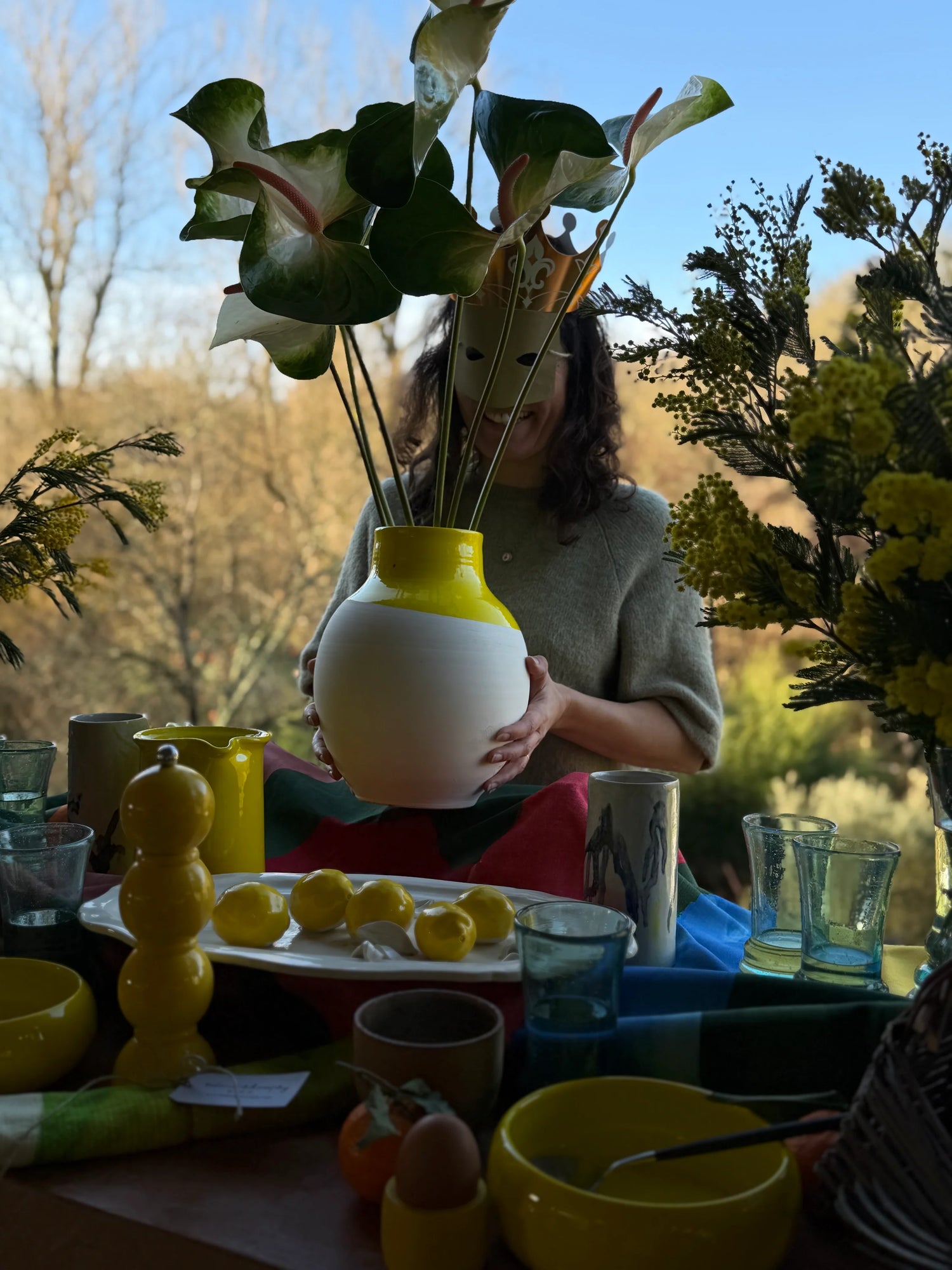 Les matières & les couleurs déclinent une palette naturelle qui épouse parfaitement les lignes imparfaites de ces objets entièrement réalisés à la main.