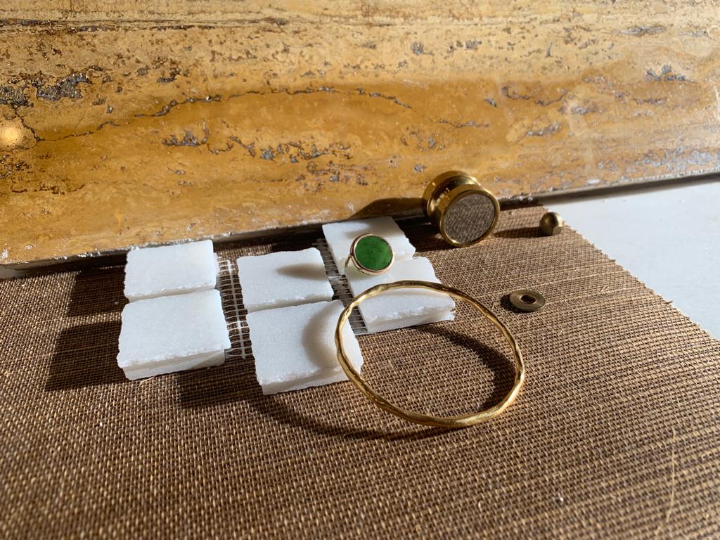Créations d’objets et de mobilier uniques pour Maison Makeba ou pour des clients en collaboration avec des artisans, artistes présents sur le lieu.