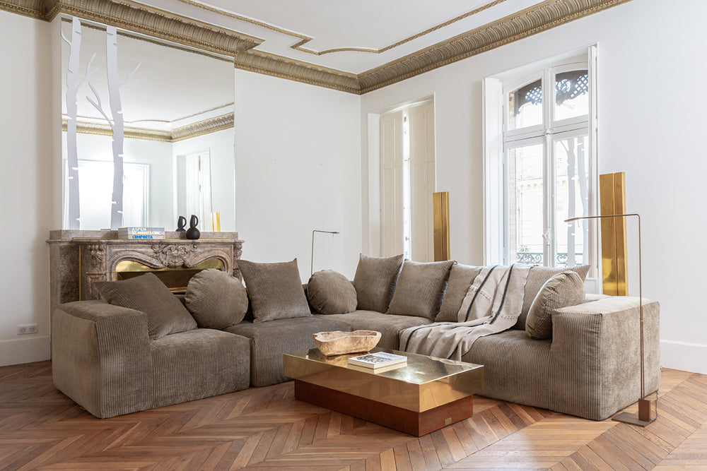 Le coin est un module carré de 110x110cm qui peut faire “tourner” votre canapé en angle droit ou bien angle gauche et s’adapter à différentes configurations de pièces.