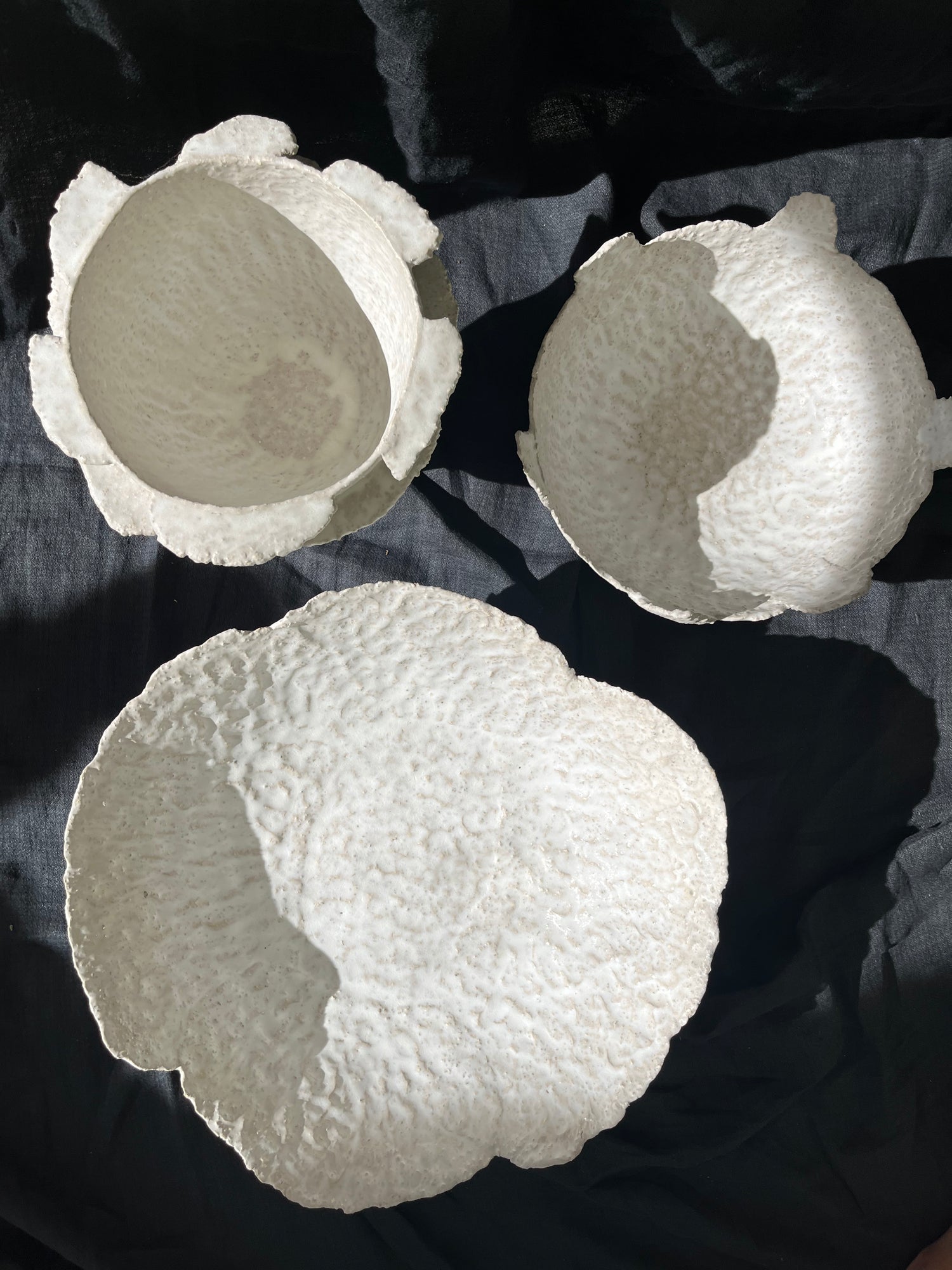coupes en grès blanc avec grosse chamotte.